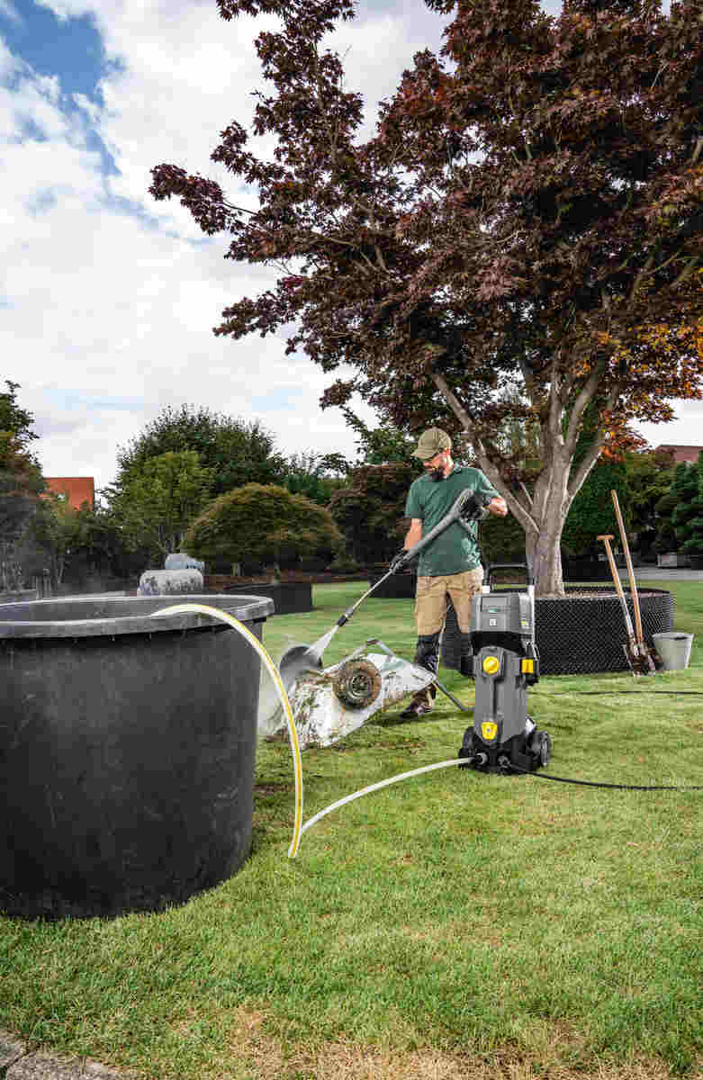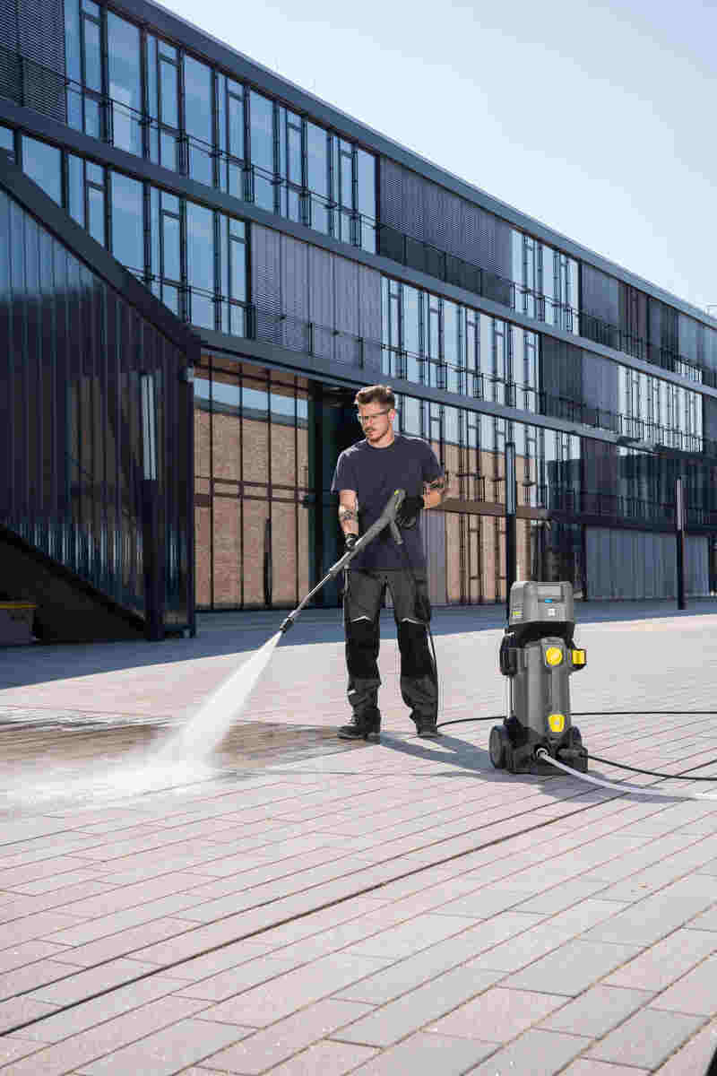 Aku vysokotlaký čistič HD 4/11 C Bp se osvědčí při úklidu na místech bez elektřiny. Díky tlaku 11 MPa účinně vyčistí nářadí i vozidla. Baterie ani nabíječka nejsou součástí dodávky.