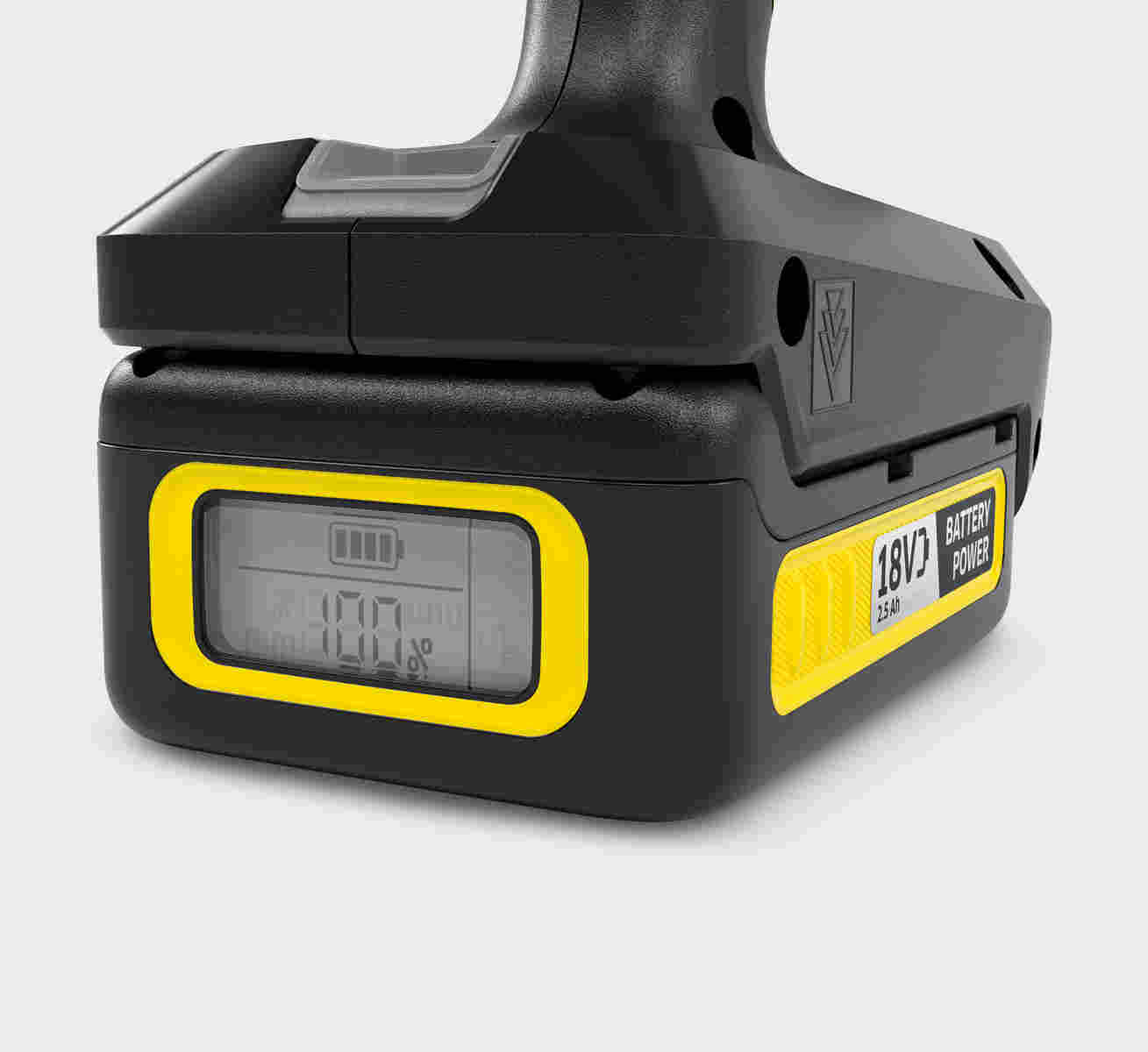 Vysokotlaké mycí stroje řady KHB jsou stroje určené pro menší a malé nasazení při práci okolo domu, garáže, chaty apod.. Kompletní bateriový pohon umožňuje až 10 minutovou práci bez závislosti na elektrické síti. S inovativní Real Time Technology se zbývající doba chodu zobrazuje na displeji baterie. Set - výměnná lithium-Iontová baterie 18 V/2,6 Ah a nabíječka jsou v ceně dodávky. Stroj KHB se snadno drží v ruce pro maximální flexibilitu. Pracovní tryska a rotační tryska .