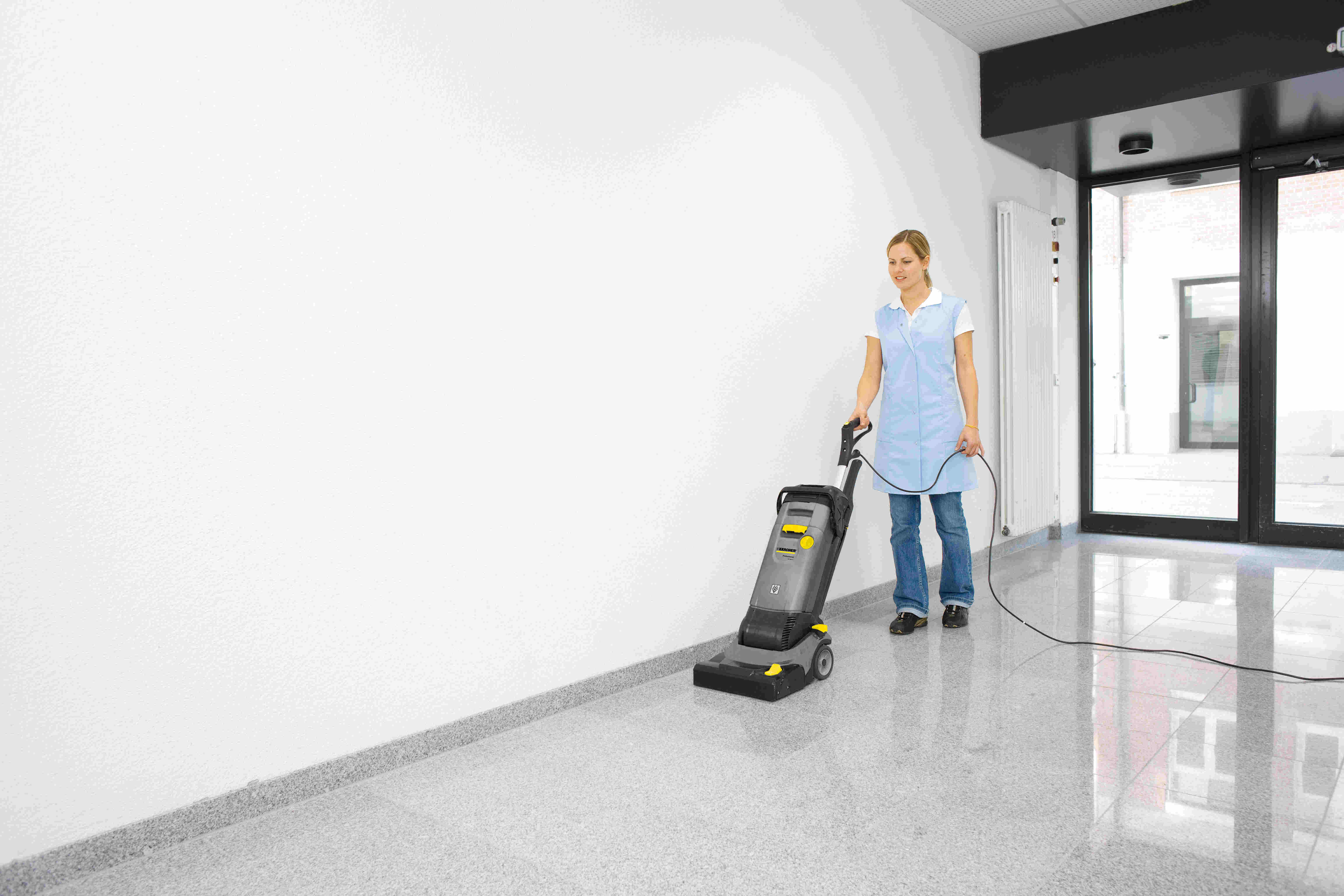 Jedno kartáčový podlahový mycí stroj KÄRCHER BR 30/4 C Ep s odsáváním napájen ze sítě 230 V. Stroj je vybaven jedním válcovým kartáčem 300 mm, který je poháněn jedním, energeticky úsporným motorem. Stroj je vybaven 2 sacími lištami s gumovými stěrkami, díky tomu stroj umývá a vysává v jedné operaci a obsluhy kráčí po umyté a suché podlaze. Stroj má dvě, na sobě uložené nádoby a to na čistou vodu o objemu 4 l a na znečištěnou o objemu 4 l. Nádoby jsou velmi jednoduše snímatelné a vybavené transportním držákem pro snadné nošení. Voda je mezi kartáče vháněna pomocí čerpadla, které se ovládá na rukojeti stroje, stejně jako celkové spouštění stroje. Sací lišta stroje je napojena na odsávací systém, jehož médiem je sací turbína, umístěná ve stroji. Díky malým rozměrům a polohovací mycí hlavě, jejíž pojezdová výšky činí pouhých 7 cm, lze ze strojem provádět drhnutí a čištění pod nábytkem pod regály apod.. Novinkou je nově řešený systém konstrukce stroje, kdy stroj vychází z koncepce kobercového vysavače a je s ním velmi snadná manipulace.