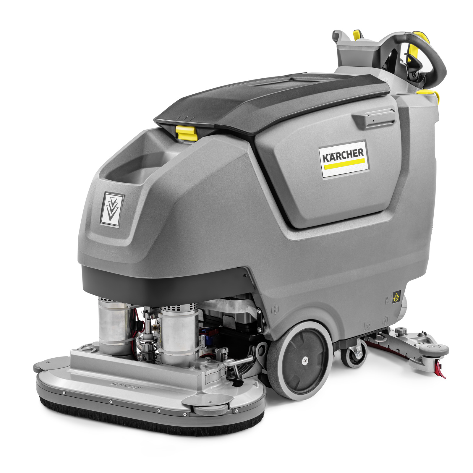 Kompaktní podlahový stroj B 80 W Bp pro mokré čištění podlah s robustními hliníkovými komponenty, dávkovacím systémem, kartáčovou hlavou D70 a funkcí automatického plnění a proplachování.