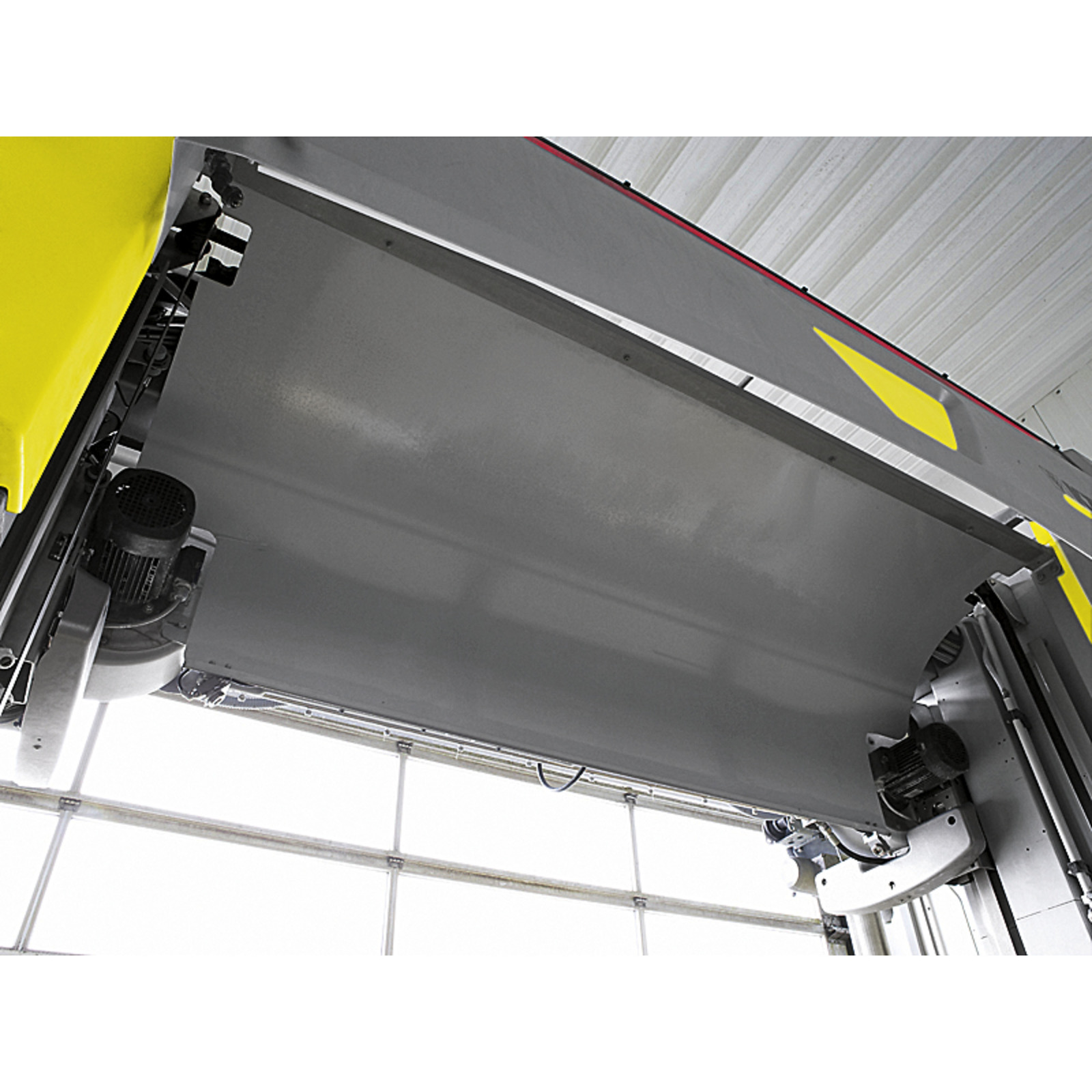 Ochrana proti rozstřiku umístěná mezi sušákem střechy a střešním kartáčem chrání sušák před rozstřikovanou vodou rotujícího kartáče a zamezuje skapávání na vozidlo během průběhu sušení.