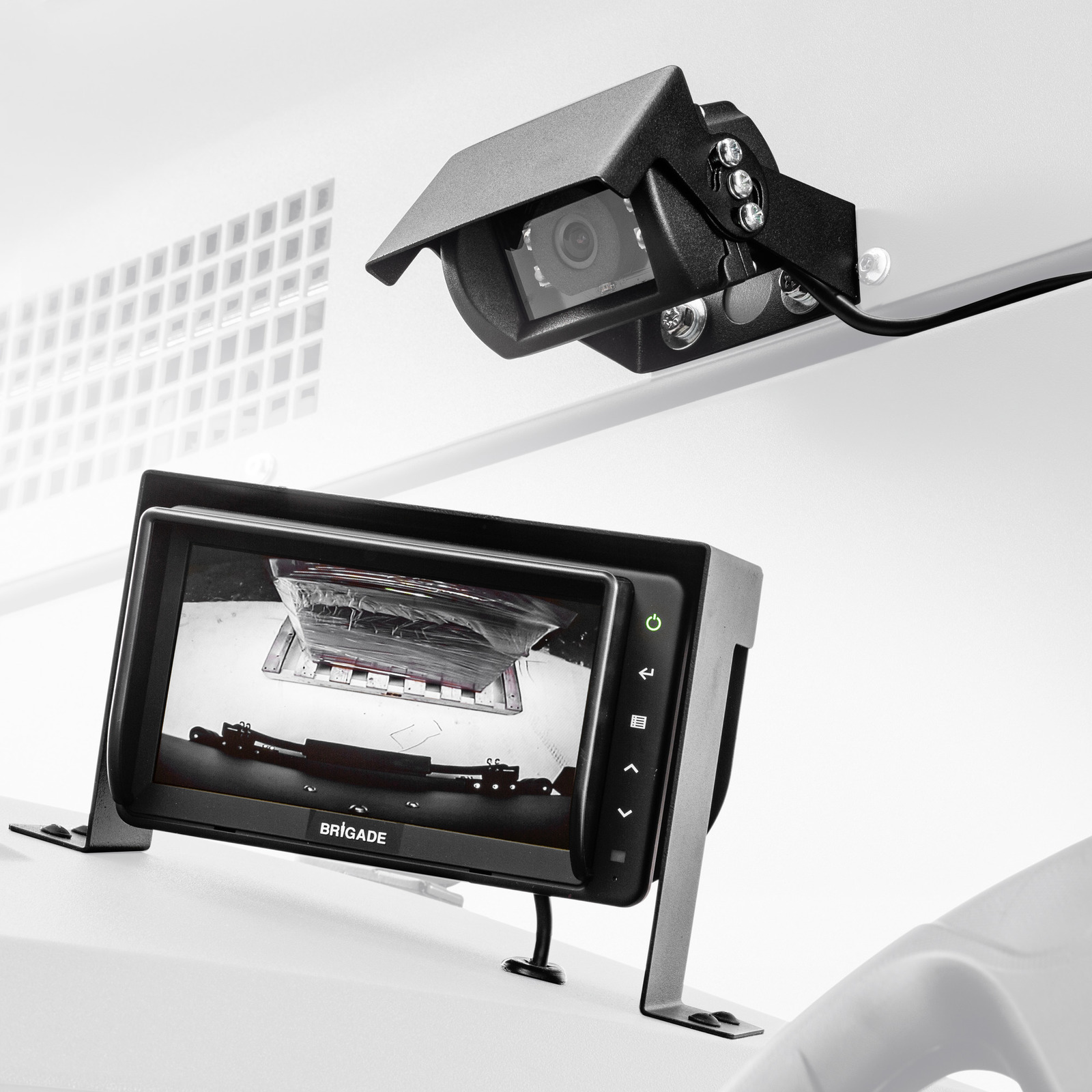 Zpětná kamera se 7" displejem pro náš podlahový mycí stroj B 300 RI. Zlepšuje viditelnost při couvání a pomáhá předcházet poškození stroje a jeho okolí.
