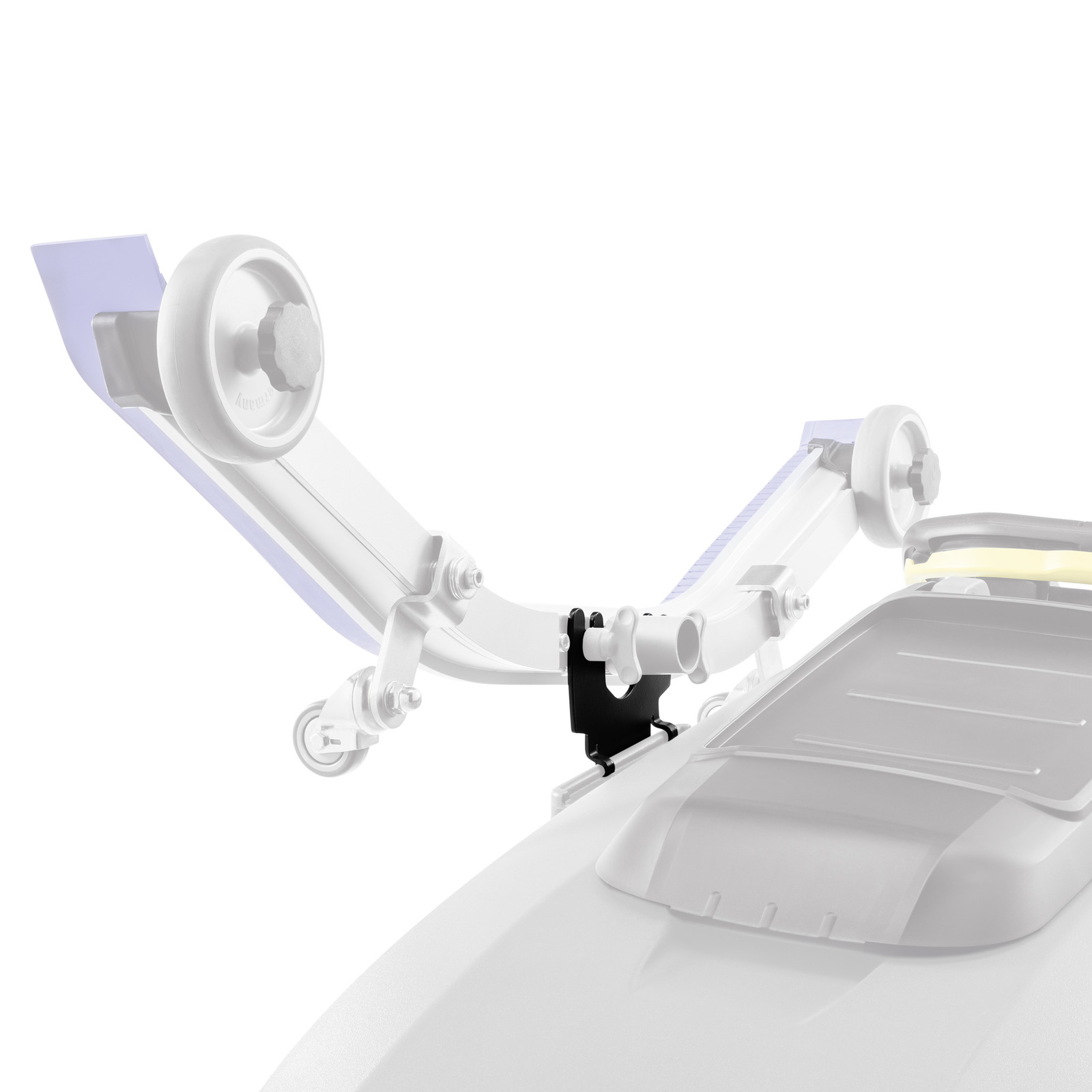 Držák stěrky: Ocelový držák je připevněn ke kolejnici Home Base na podlahovém mycím stroji a umožňuje bezpečné skladování a přepravu stěrky.