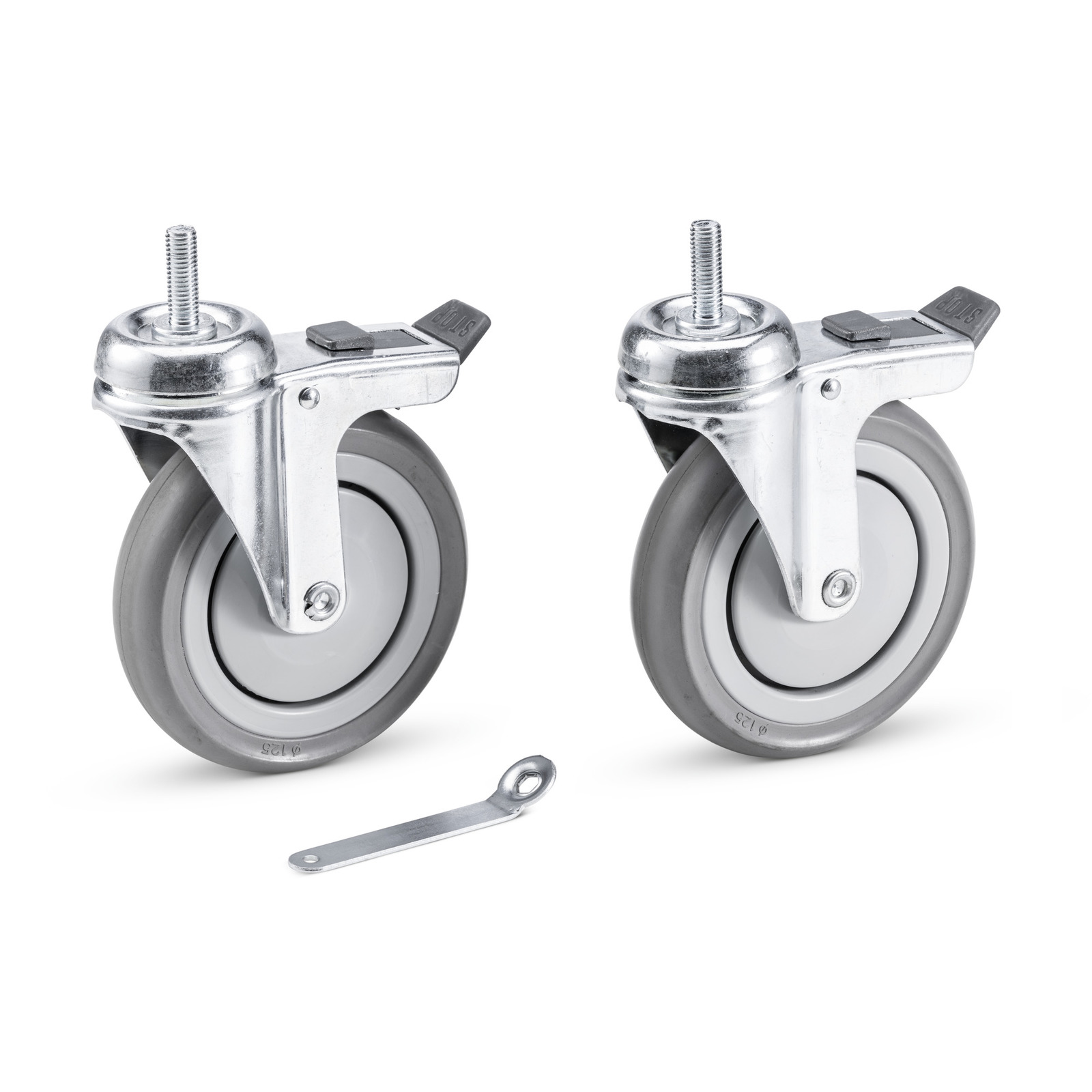 Kolečka v balení po dvou s brzdou. Velmi robustní a hladce klouzající na tvrdých podlahách a textilních krytinách.