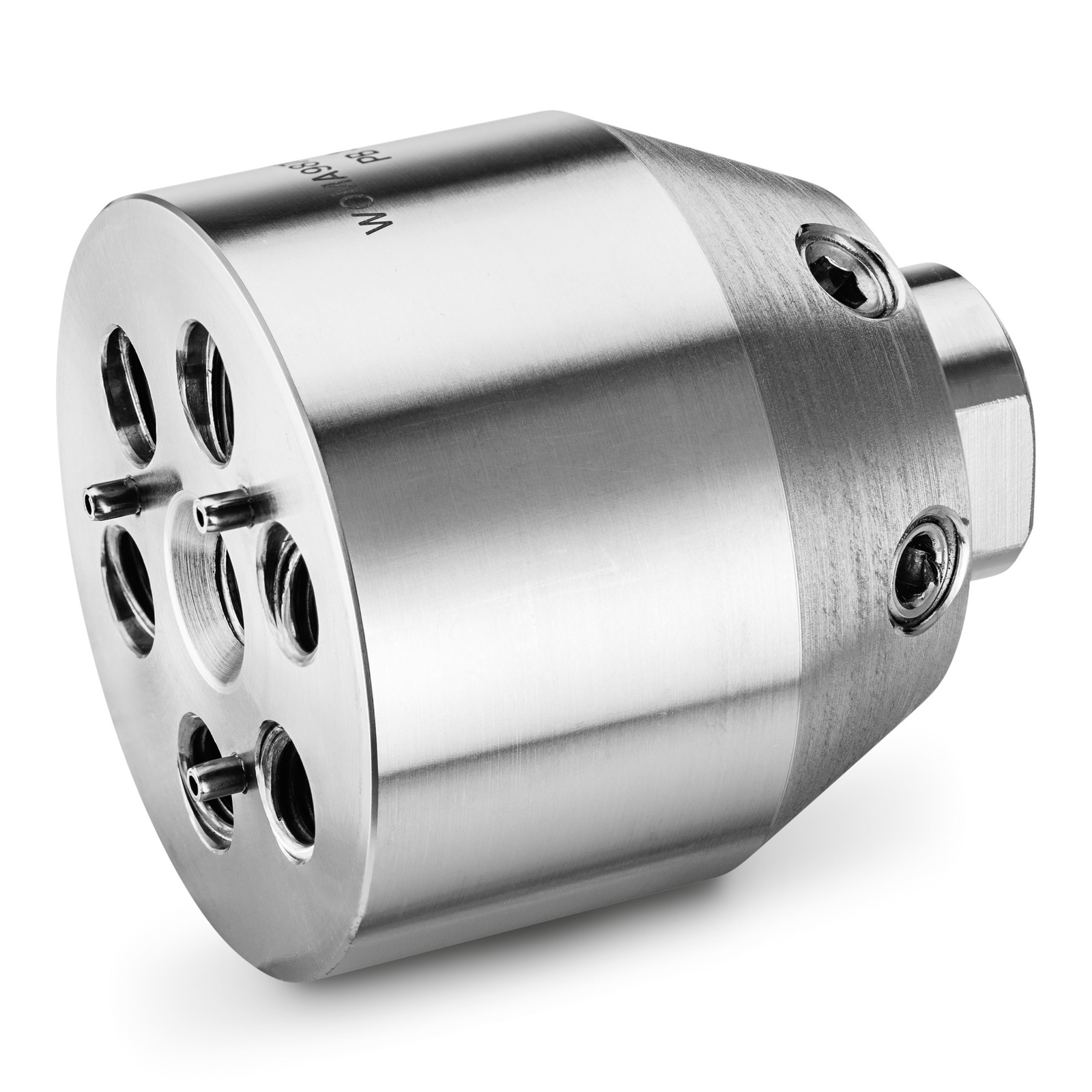 6-trysková nosná hlava trysky pro trysku F21. Vhodné pro pracovní tlaky až 3 000 bar. Úhel stříkání 25 °, zahrnuje ochranný kryt a kondicionér průtoku.