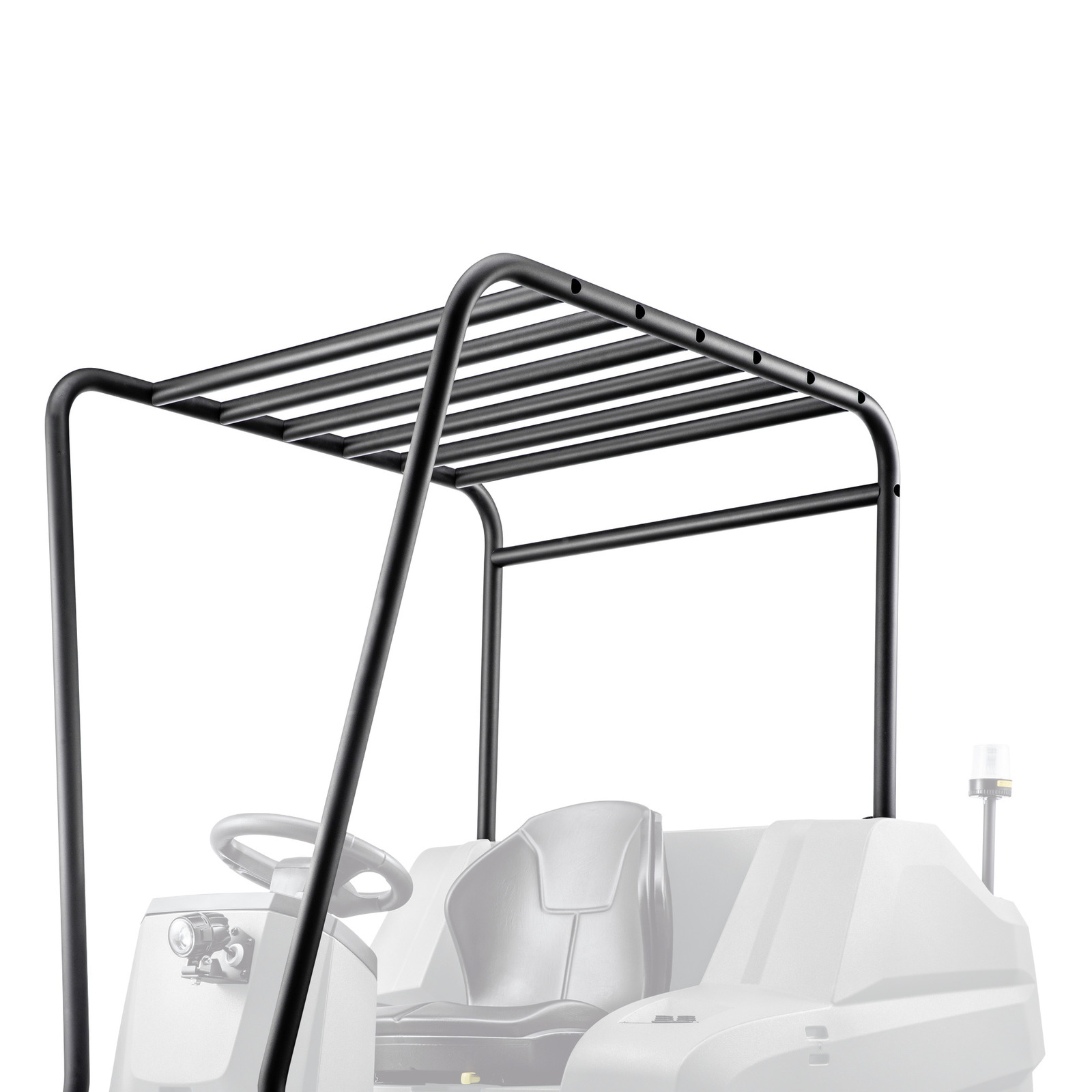 Perfektní pro preventivní ochranu před padajícími předměty při úklidových aplikacích ve skladech s vysokými regály: robustní ochranná střecha pro zameták Kärcher KM 100/120 R.