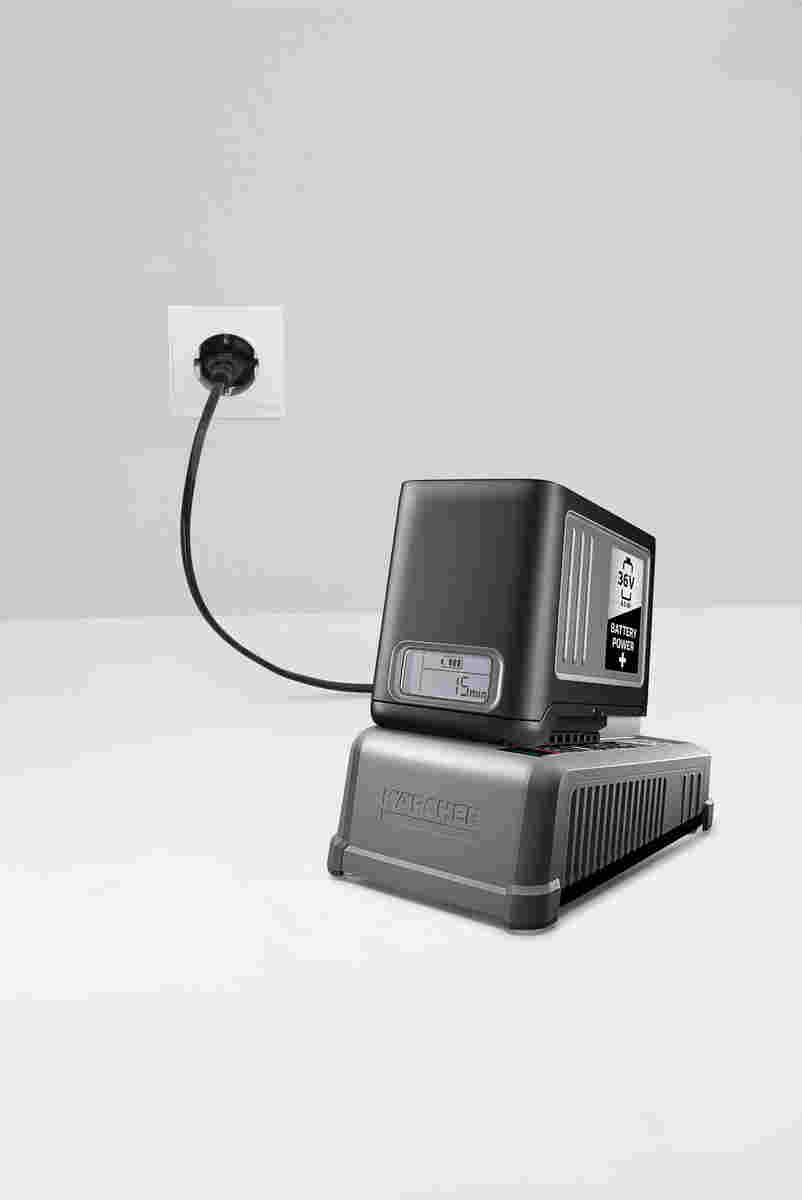 Dobíjecí stanice pro 36 V. Ve stanici je možné dobíjet baterie 36 V 6 - 7,5 Ah.Souhrn - Kärcher, Rychlonabíječka 36 V