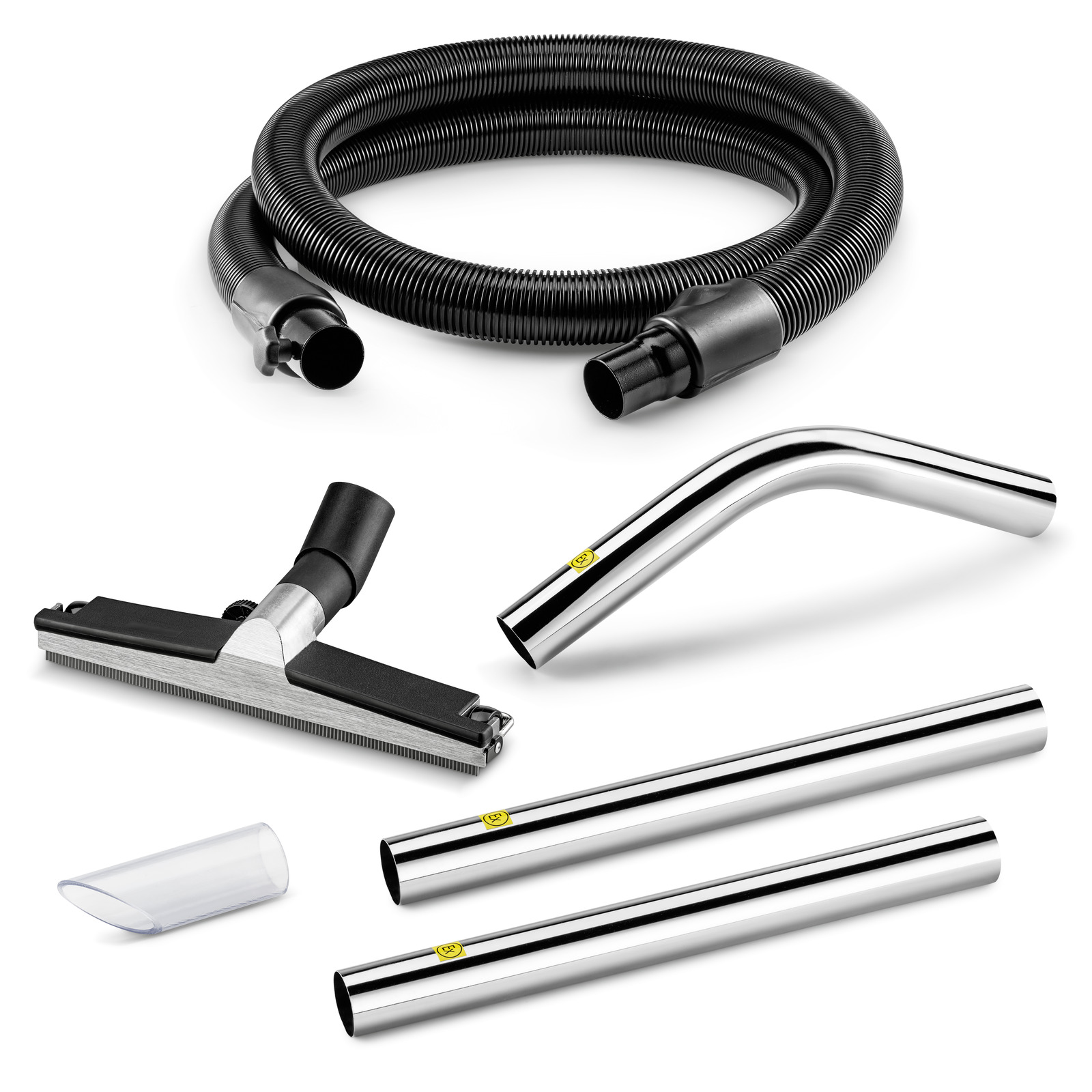 Sada na čištění podlah Advanced na tekutiny: EVA hadice (9.990-926.0), rukojeť (9.990-928.0), 2 × sací trubice (9.990-932.0), podlahová hubice (9.990-938.0), standardní hubice (9.980-761.0).