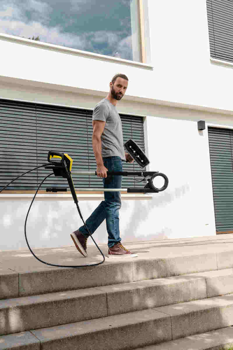 Teleskopický pracovní nástavec vhodný pro všechny modely hobby vysokotlakých mycích strojů KÄRCHER řady K 2 - K 7 s dosahem 1,20 do 3,70 metrů, ideální k pohodlnému vysokotlakému čištění např. venkovních rolet, fasád a jiných nacházejících se ve větší výšce. Vybaveno závěsný pásem pro pohodlné přenášení a snadnou manipulaci