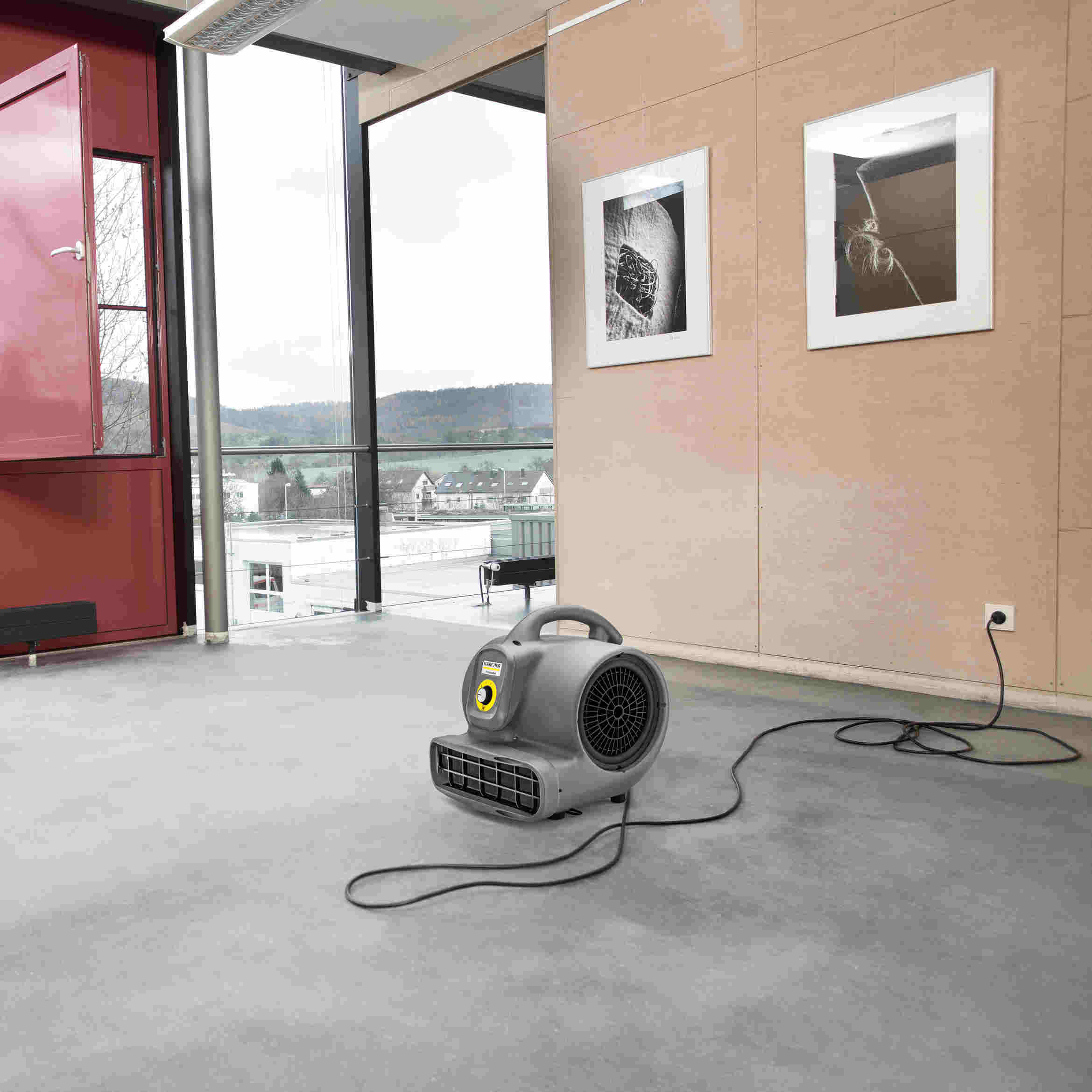 Vzduchový vysoušecí ventilátor KÄRCHER AB 20 Ec vhodný pro rychlé sušení mokrých textilií po vyčištění. Kompaktní, lehký a snadno přenosný stroj umožňuje až o 50 procent rychlejší dobu sušení, vyčištěné koberce jsou tak rychleji vysušeny a připraveny k použití. Ventilátor je velmi tichý a je vhodný pro použití v například kancelářích, hotelech i během otevírací nebo pracovní doby. Bez uhlíkový motor Ec s minimálním opotřebením zaručuje nízkou spotřebu energie a dlouhou životnost stroje.