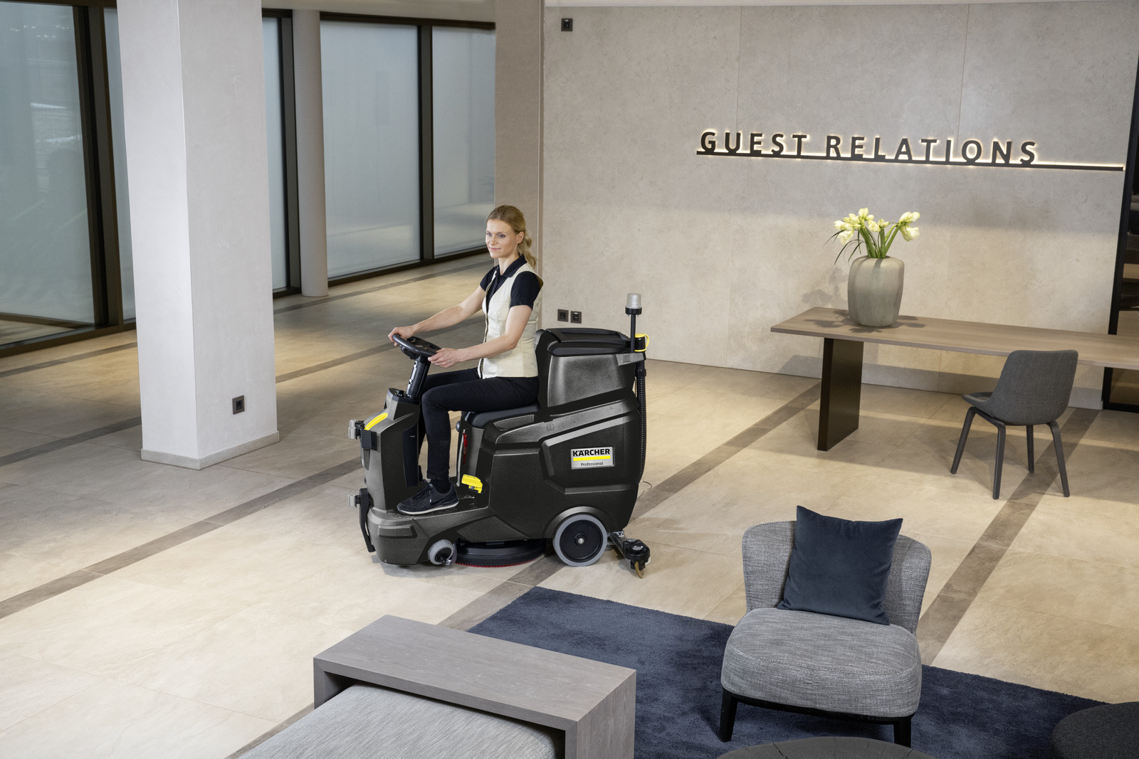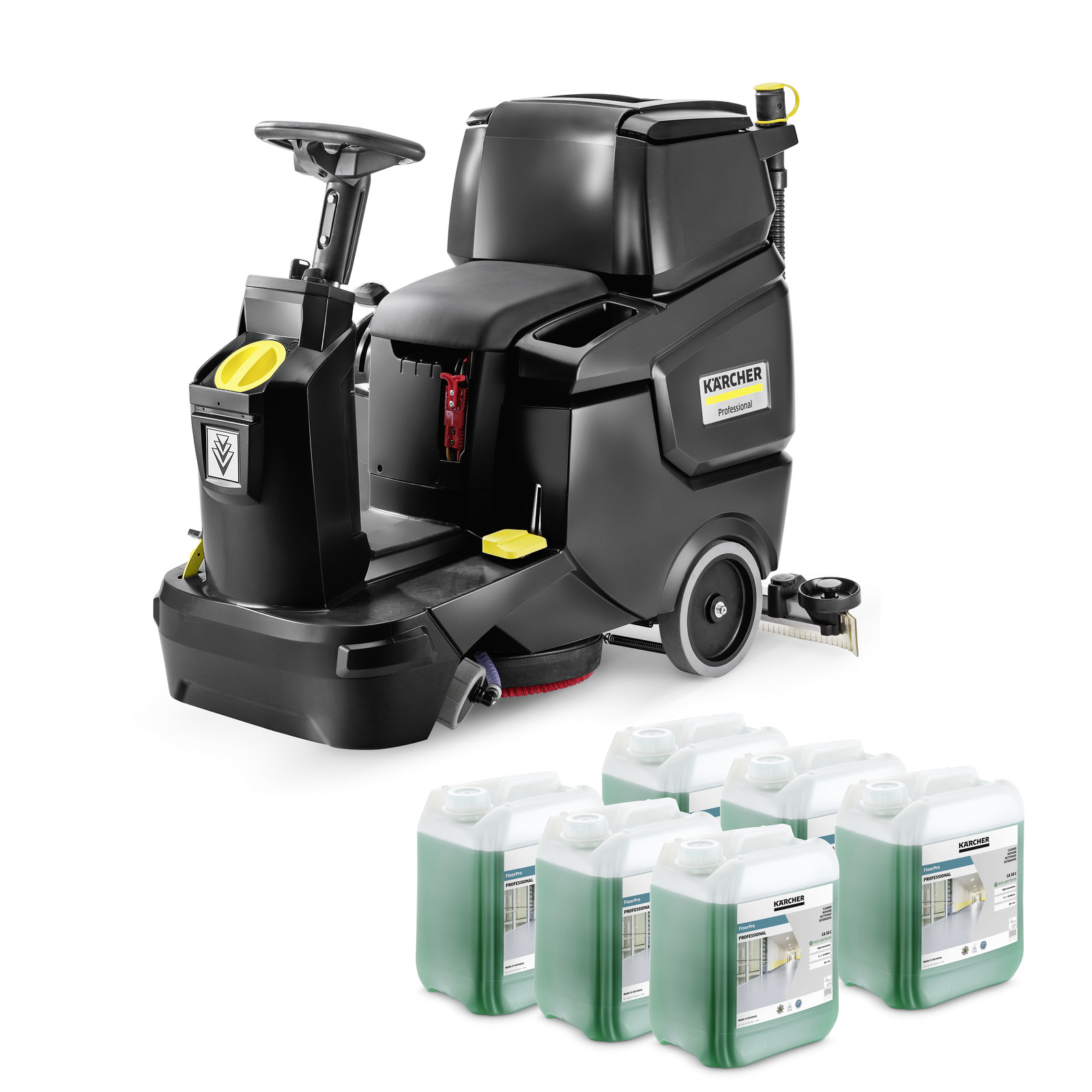 Pro plošný výkon až 2000 m2 za hodinu: bateriový podlahový mycí stroj BD 50/70 R Classic Bp Pack Limitovaná edice v černé barvě s kotoučovým kartáčem.