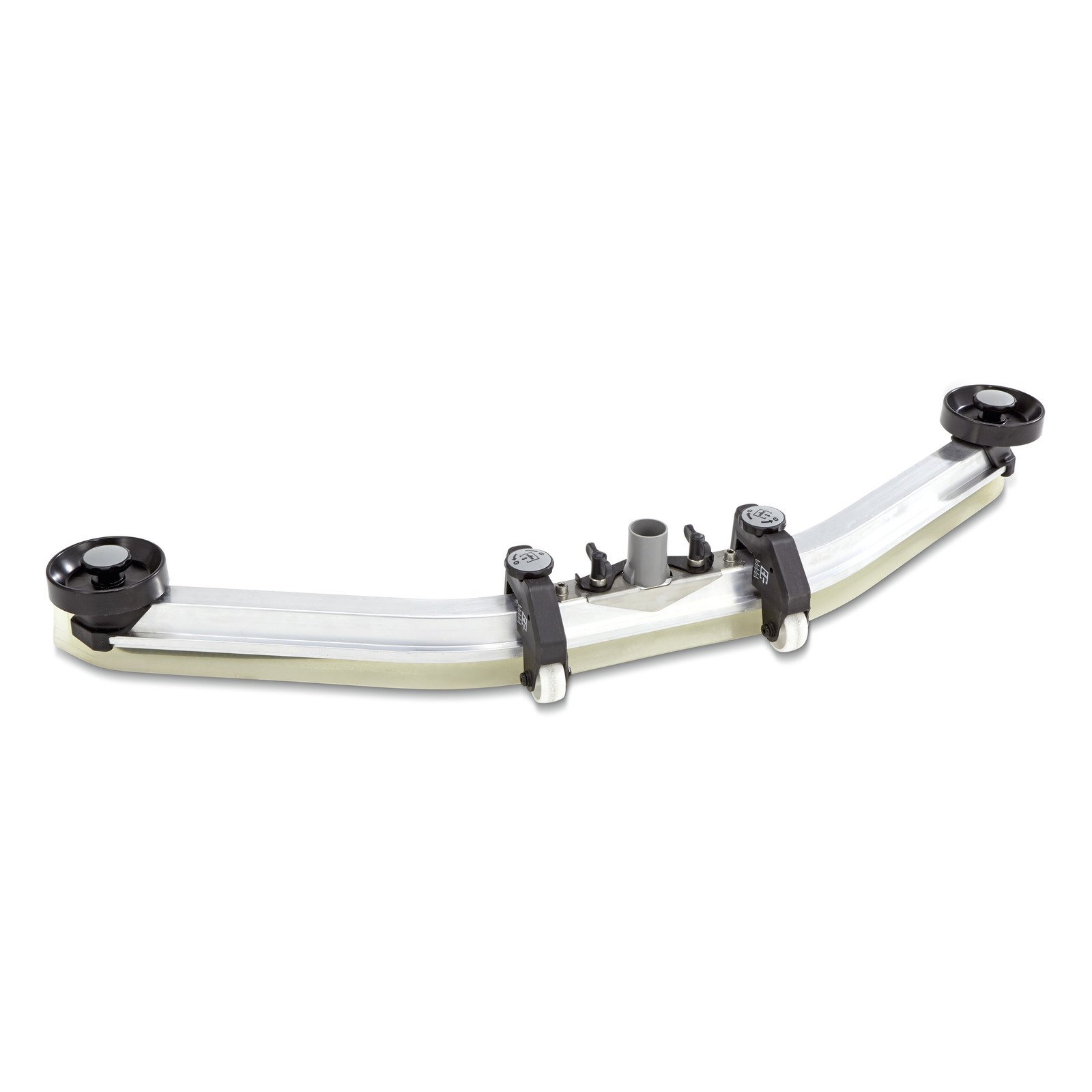 Speciálně zalomená sací lišta se zvlášť širokým rozsahem. Sací stěrka z průhledného polyuretanu odolného proti olejům s mimořádně dlouhou životností. S opěrnými kolečky.