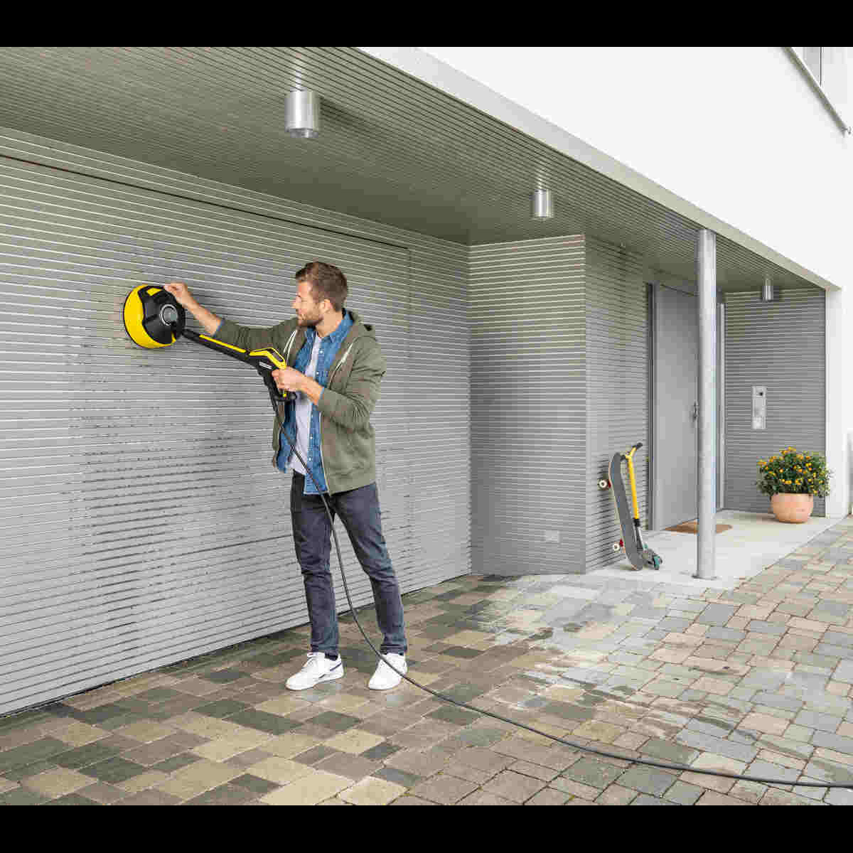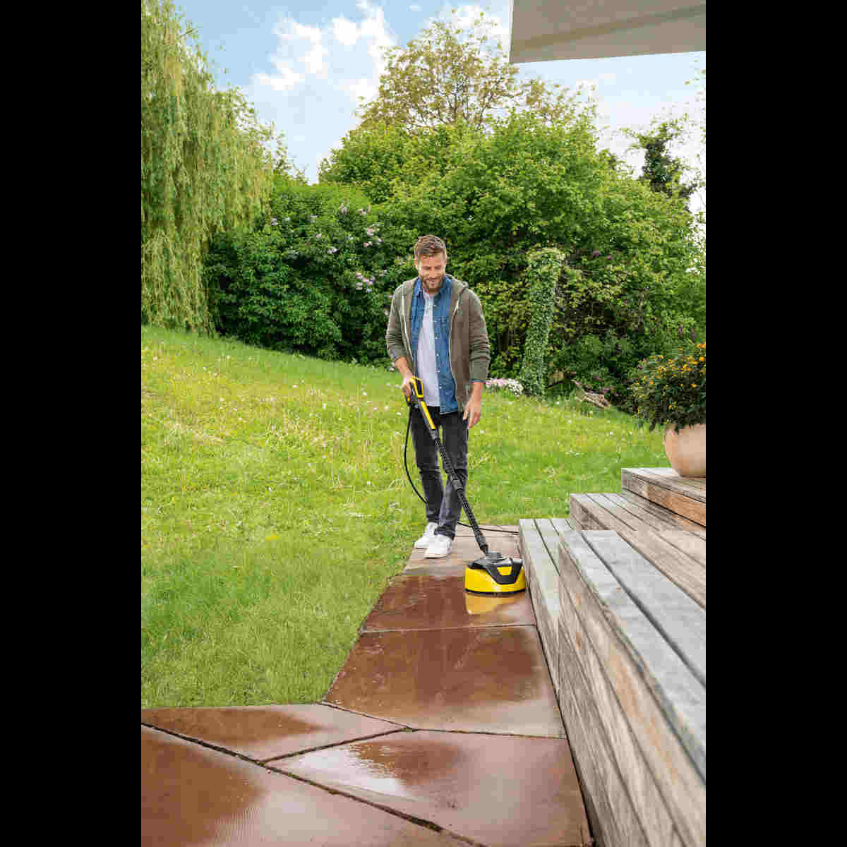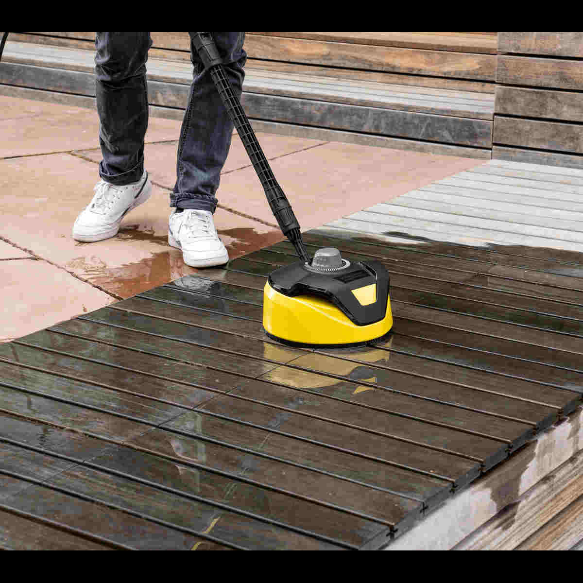 Kärcher T 5 slouží k čištění rovných ploch bez nežádoucího rozstřiku, jako jsou např. terasy, chodníky, vjezdy atd.. S dodatečnou rukojetí k čištění vertikálních ploch jako jsou např. garážová vrata.