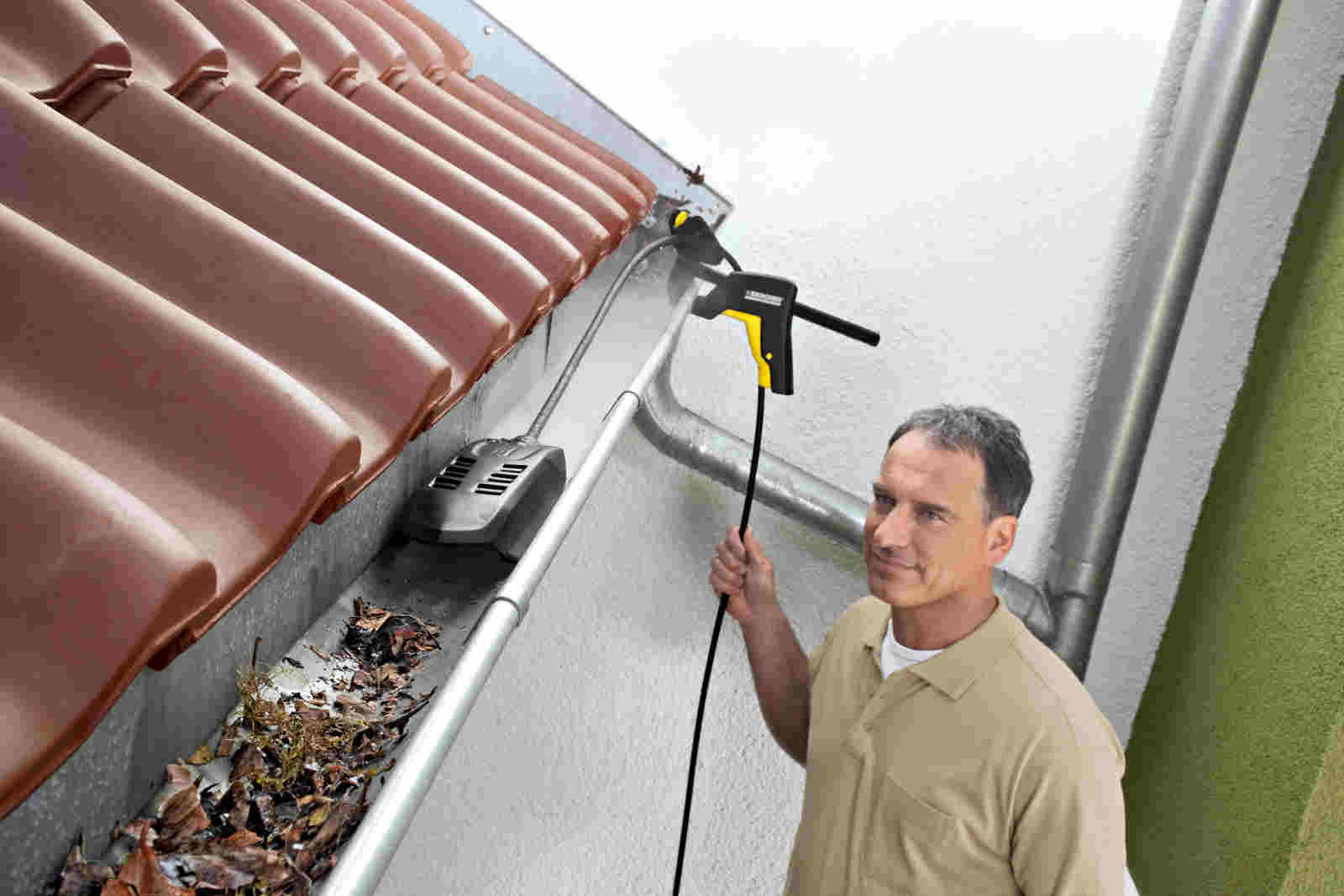 Sada na čištění okapů a potrubí pracuje za vás - s vysokým tlakem. Vedení odpadních vod, ucpané potrubí a okapy snadno pročistíte.