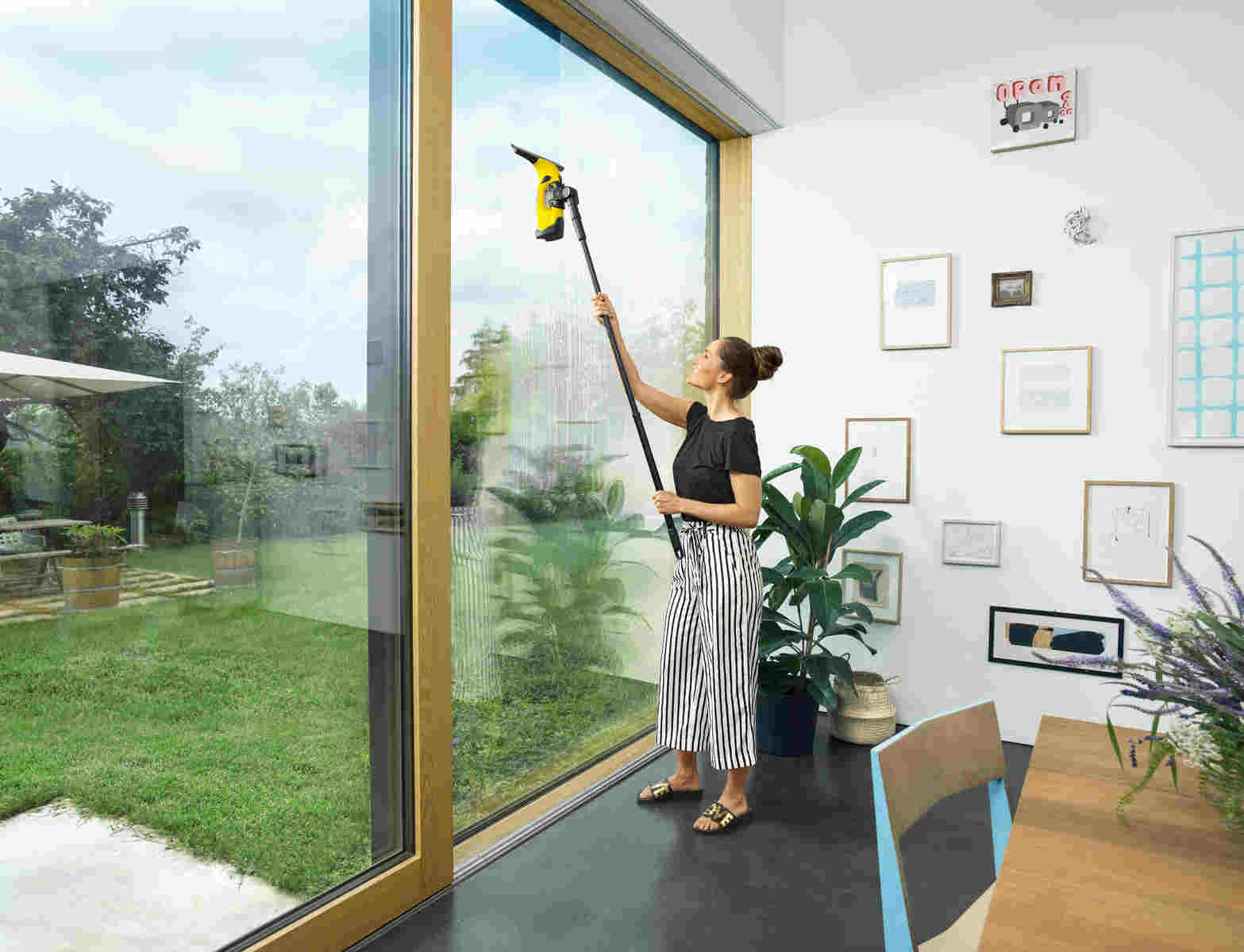 S teleskopickou prodlužovací sadou pro akustěrku a vibrační bateriový čistič můžete čistit i velmi vysoká okna. Možnost vytažení od 0,6 do 1,5 metru délky.