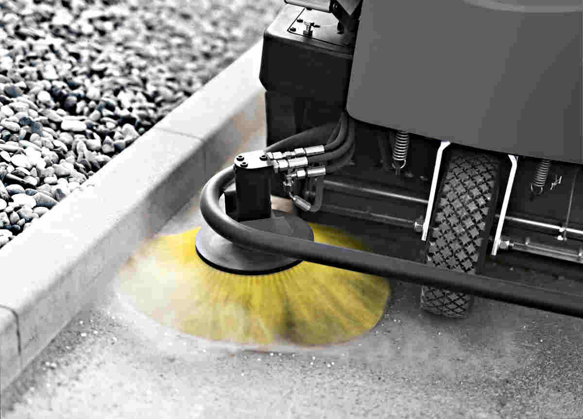 Komfortní a moderní zametací stroj s odsáváním a místem pro řidiče pro profesionální používání ve venkovních i vnitřních prostorech pro plochy 6.000 – 7.800 m2/h.